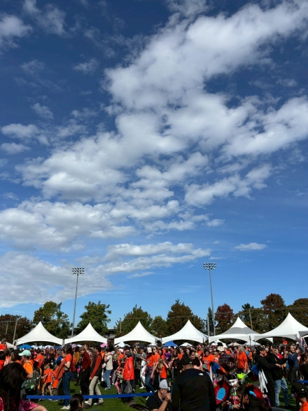 I attended a powwow event hosted by a North American first nations community with my host parents and Julia. Many people at the event wore orange shirts. The merchandise section featured many traditional items passed down from first nations peoples, such as Cowichan sweaters, dreamcatchers, and art. Cowichan sweaters originated with Canada’s Cowichan first nations are hand-knitted. Dreamcatchers, made with spiderweb-like threads stretched across a willow hoop, were believed to catch bad dreams and deliver only good ones. They were traditionally hung above children’s beds. Additionally, there were performances of First Nations dances and songs. The costumes worn for the dances were incredibly vibrant and colorful. Each song had its own unique rhythm and melody, making them a joy to listen to.