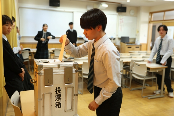 立会演説会後は、学年ごと異なる投票所に向かい、投票用紙に記入して投票を行いました。