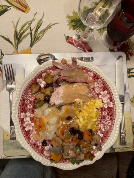 The meal brought together host parents’ daughter, son, the host father’s mother, sister, and others, making 11 of us in total. The dishes included turkey, stuffing, corn pudding, and potato gratin—it was truly luxurious. We ate the turkey with cranberry and gravy sauce. The turkey and stuffing, which I was eating for the first time, were delicious. For dessert, I had pumpkin pie and apple pie. The pumpkin pie was exquisite, with the perfect combination of pumpkin’s natural sweetness and the aroma of cinnamon. The apple pie perfectly matched the apples’ inherent sweet-tart flavor with the flaky, crisp texture of the pie crust.