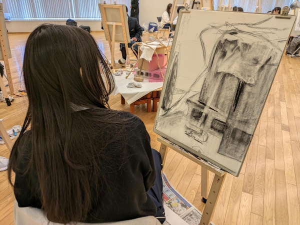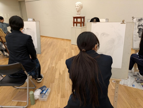 今回は、静物(初級、中級、上級)と石膏(首像、胸像)でコースが分かれており、1年生は比較的難易度の優しいコースに、2年生は受験を見据え難易度の高いコースに挑戦しました。
