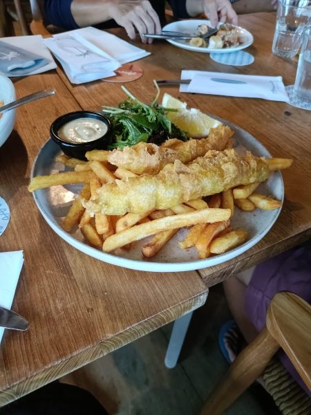 49日目、月曜日。スポーツウォリアーの授業に行きタッチラグビー、バスケ、フットサルをやりました。オーストラリアの人たちはみんな運動が上手なので楽しいです。今日はアイザックが家に残って勉強していたので一人で学校に行きました。ハリソンがたくさん助けてくれたので楽しく過ごせました。学校から帰ってしばらくすると家にアイザックのおばあちゃんがいました。また会えて嬉しかったです。夜ご飯を食べにアヌカという家の近くにあるレストランに行きました。そこでアイザックの親戚と会いました。アヌカでピザやフィッシュ&チップスなど色々な料理を食べました。自分はフィッシュ&チップスがお気に入りです。夜ご飯の後に一人でビーチに行きました。夕方のビーチはとても綺麗でした。