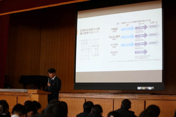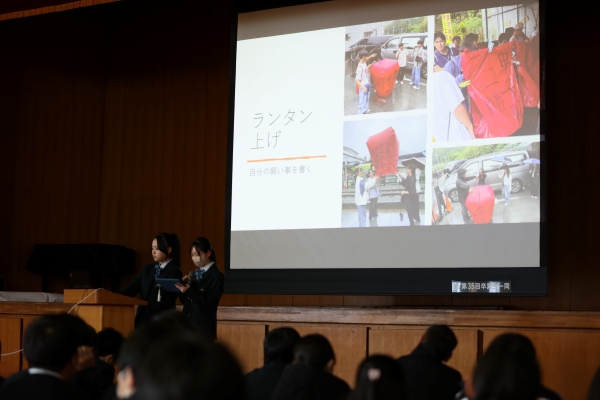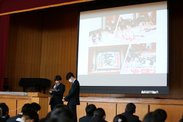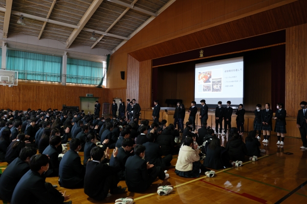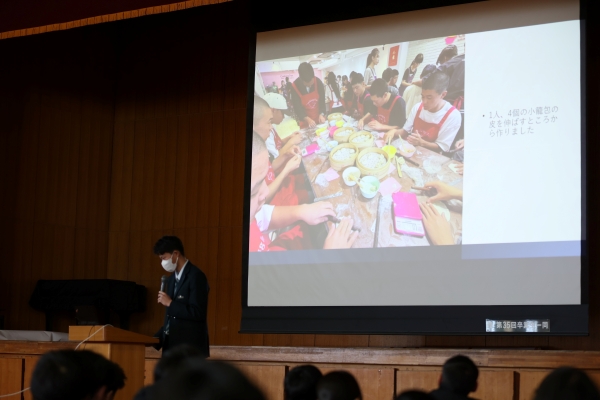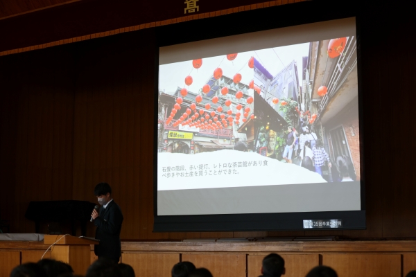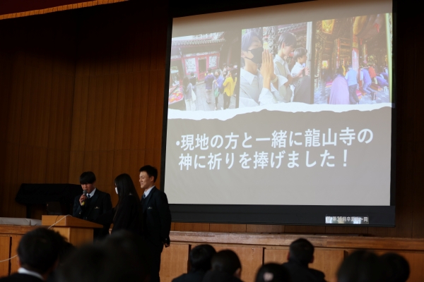 LHR(ロングホームルーム)の時間に2学年の生徒が集まり、修学旅行での学びの様子を報告し合いました。