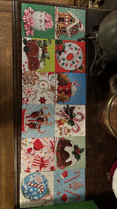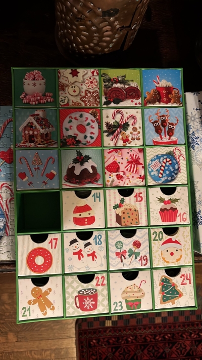 12月1日に家にジグソーパズルのアドベントカレンダーが置いてありました。土曜日の夕食後にホストペアレント、ジュリアちゃんと一緒に1人1個のジグソーパズルを組み立てました。私は小学生以来、久しぶりにジグソーパズルをしました。そのため、最初は何から手をつけていいのか分からずただの感覚で組み立てていました。中々進まず苦戦していると、ホストマザーが引き出しの裏に完成形の絵がありそれを参考にすると進めやすいと教えてくれました。アドバイスを参考にするとコツが掴めてきました。だんだんと完成形が見えてくると楽しくなってきました。最後の1ピースをはめて完成した瞬間は達成感がありました。
