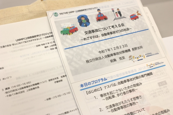 NASVA(ナスバ:自動車事故対策の専門機関)長野支社長様や千曲バス上田営業所長様などを講師に招き、事故の起こる原因や対処について学びました。