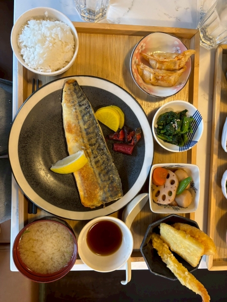 On Saturday, I went to a Japanese restaurant with three friends from VAB. One of my friends had visited the restaurant before and recommended it, saying that the food was very delicious. The restaurant was crowded with many customers, and I could really feel how popular it was as well as the high level of interest in Japanese cuisine. There were so many appealing dishes on the menu that it was hard to choose, but I decided to order one of the restaurant’s popular dishes, the grilled mackerel set meal. When the food arrived, the set included the main dish of grilled mackerel, four kinds of side dishes, steamed rice, and miso soup. Everything looked so appetizing that I couldn’t decide what to eat first. When I tried the mackerel, it was thick, tender, and juicy, with crispy skin, and it was absolutely delicious. The side dishes, such as simmered vegetables and tempura, were also authentic Japanese dishes. Every dish had a nostalgic flavor that reminded me of my time in Japan. The food was so good that I felt it was a shame to finish it. There were many other dishes on the menu that looked delicious, so I would love to visit the restaurant again.