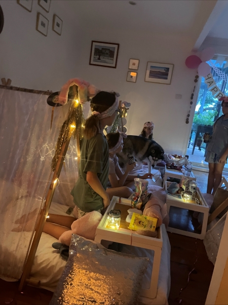 Today was my host family’s youngest sister’s 10th birthday party. When I woke up in the morning, strangers were busily coming in and out of the house, and all the sofas in the living room had been moved. They had set up six small tents in the newly opened space. They decorated the whole house with cute songs by Taylor Swift, my sister’s favorite. I was really surprised at how much effort goes into birthday parties, which is completely different from Japan. I tied my sister’s hair with a ribbon. I was so happy that she was happy. We invited about five friends over and the party went on until late into the night. We played piñata in the garden, where you hit a box to give out candy. We had pizza for dinner. It was delicious.